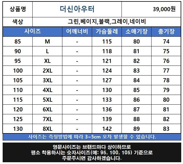 85(M),90(L),95(XL),100(2XL),105(3XL),110(4XL)